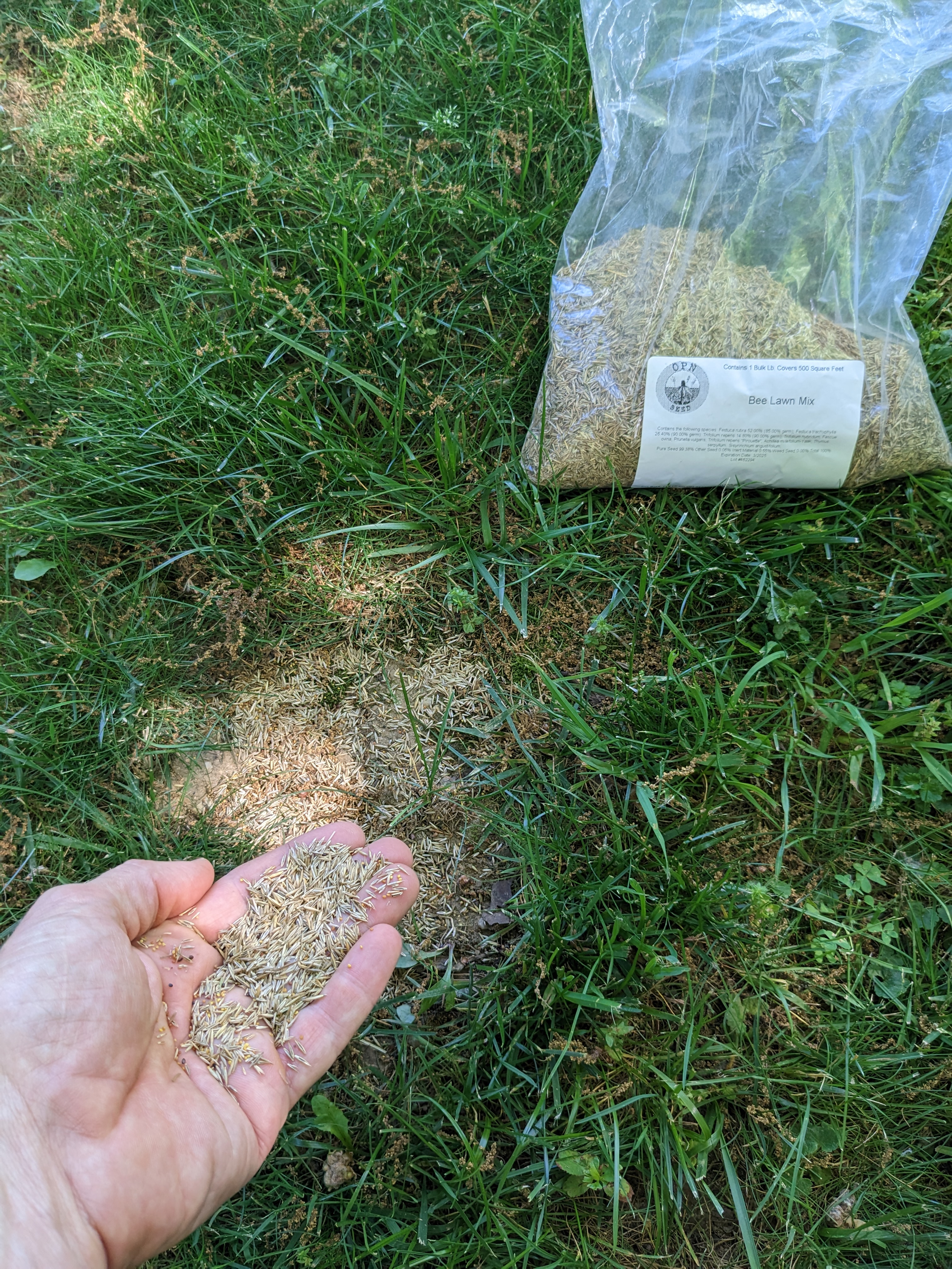 Step five: Enjoy! Creating a quilt lawn should be an enjoyable experience. If you feel uncomfortable about how your neighbors might react, you can only pursue the quilt lawn idea in the rear of your home. If you get excited and want to go further you can over-seed your current lawn with a diverse seed mix. For example, in the cool spring weather you can add seeds, such as the bee lawn mix from Ohio Prairie Nursery, to any bare patches that form.